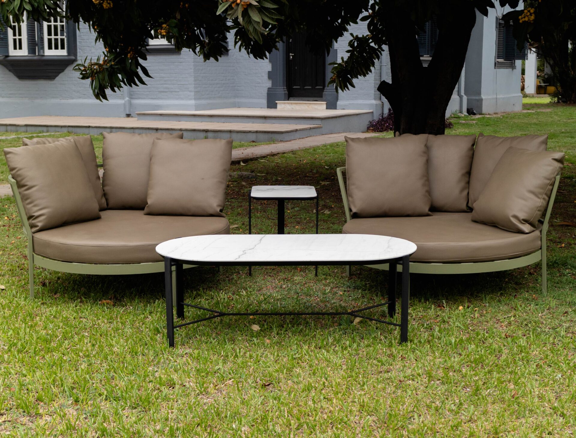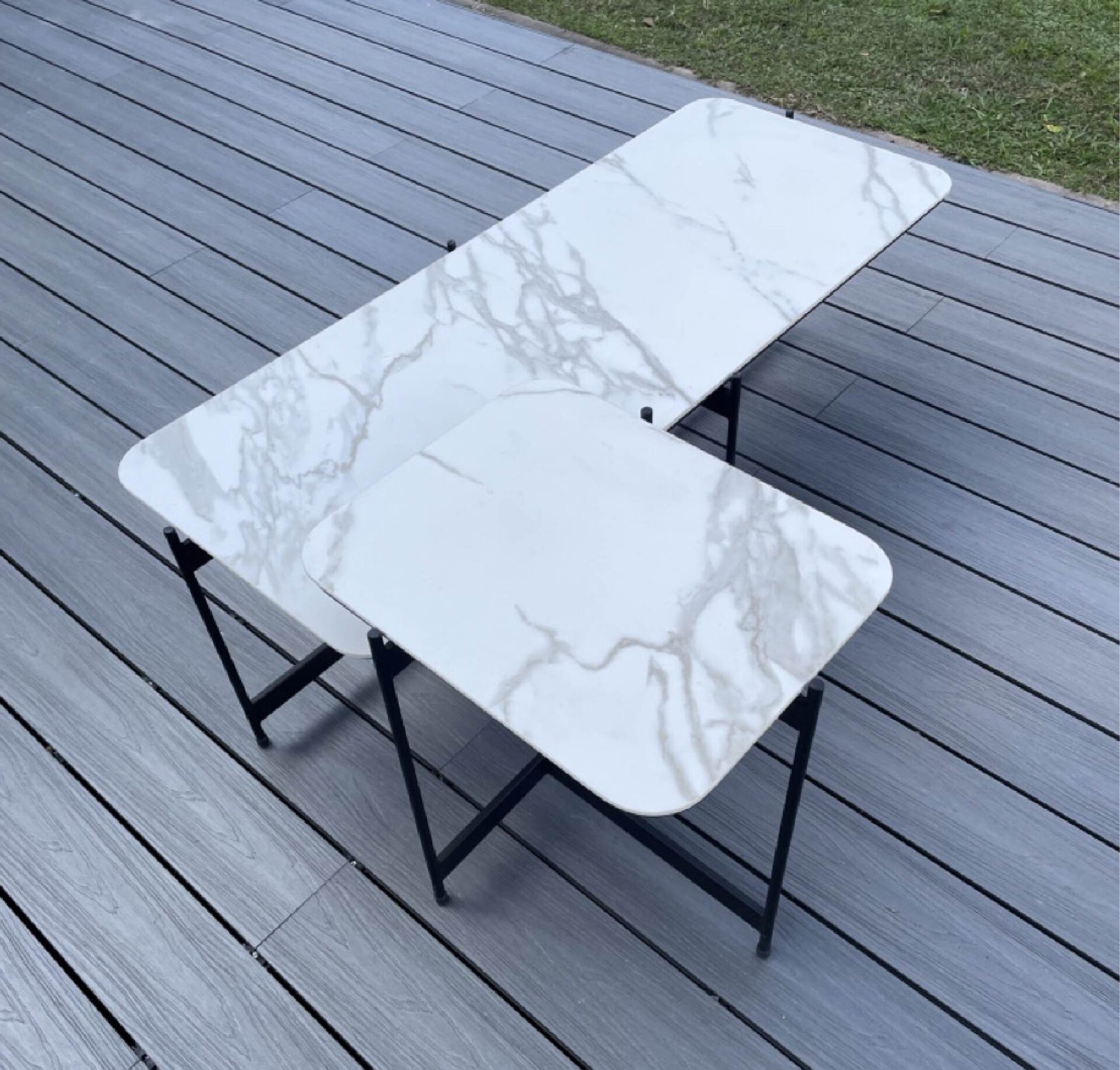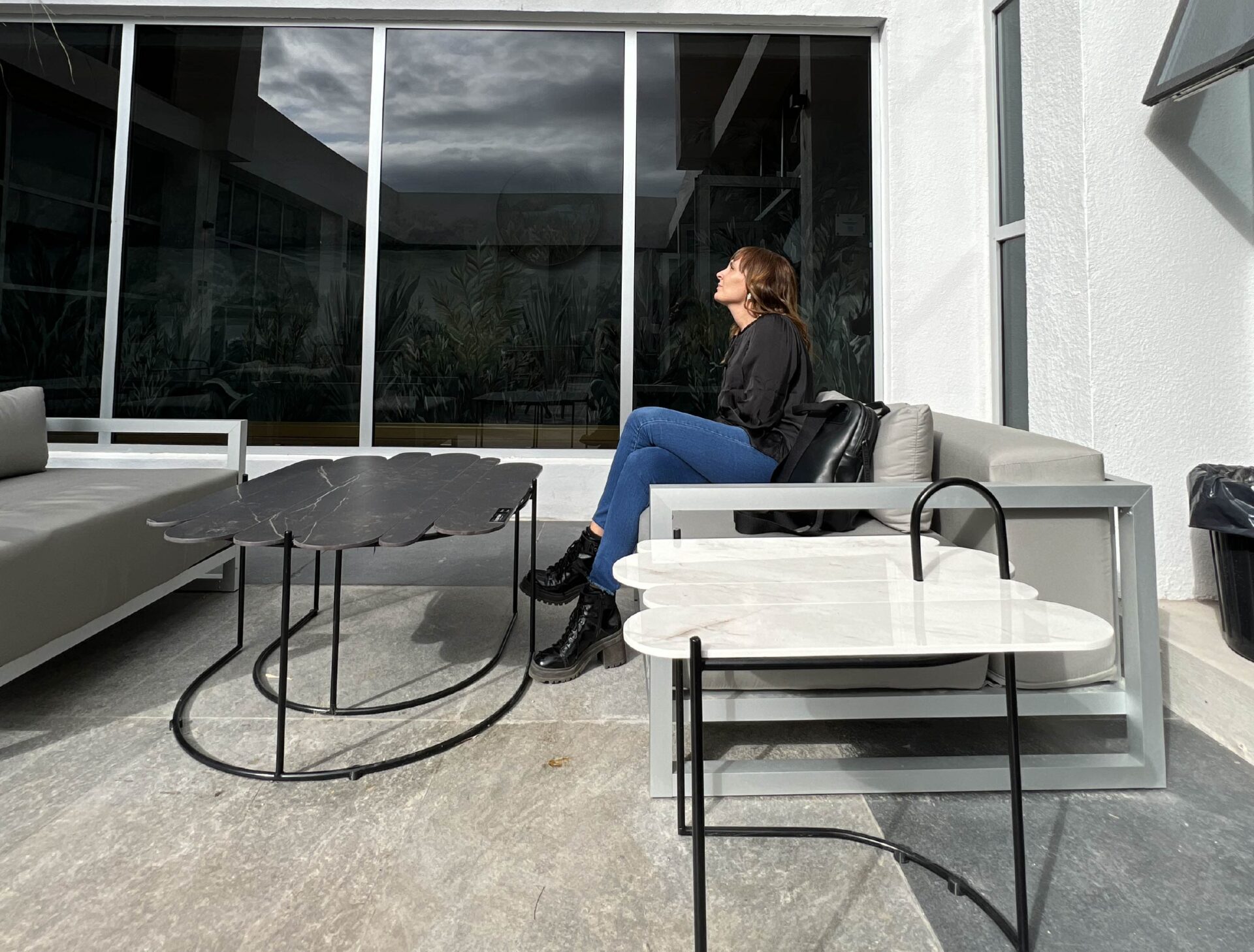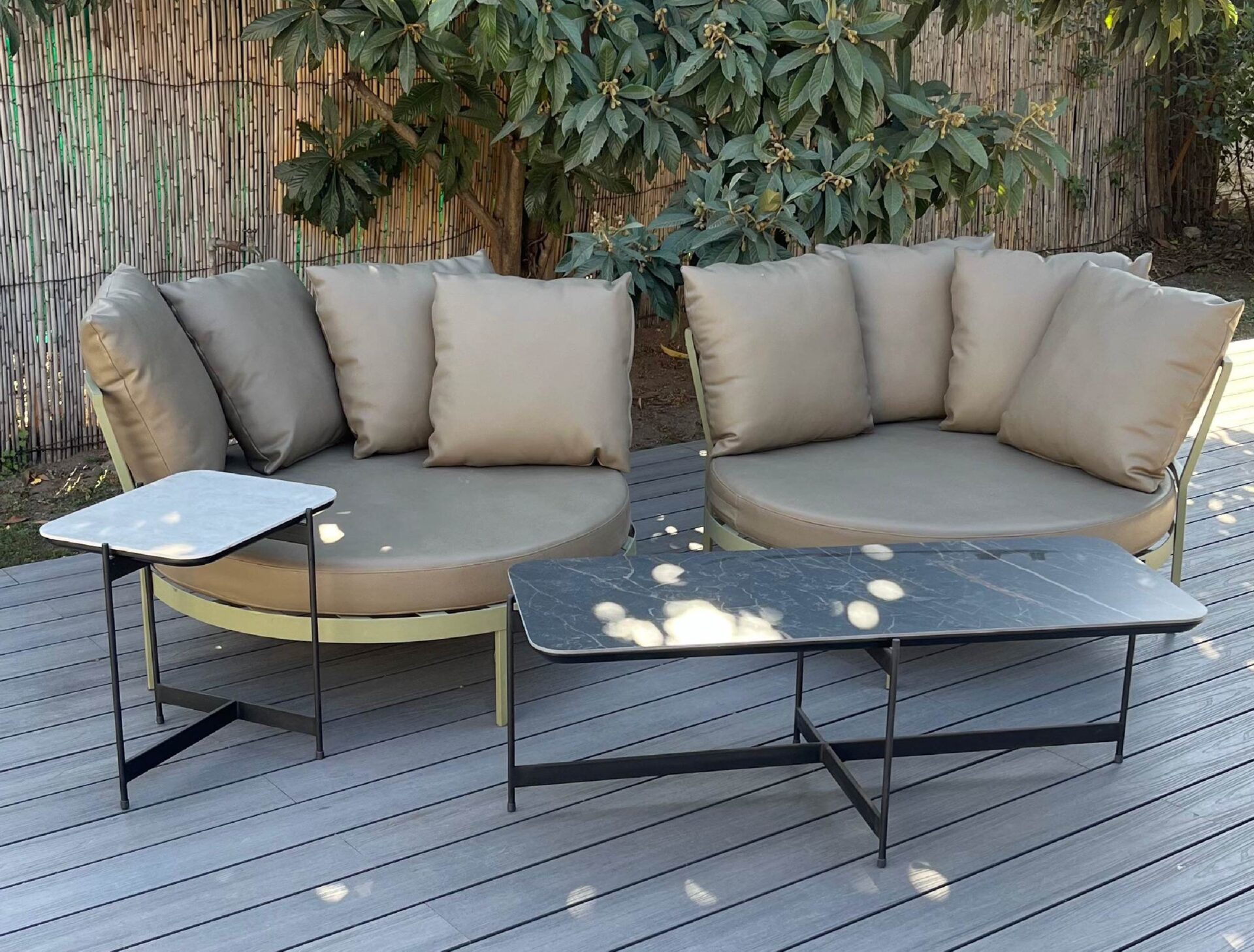 Diferentes diseños con bases metálicas con terminación epoxi y tapa de piedra sinterizada