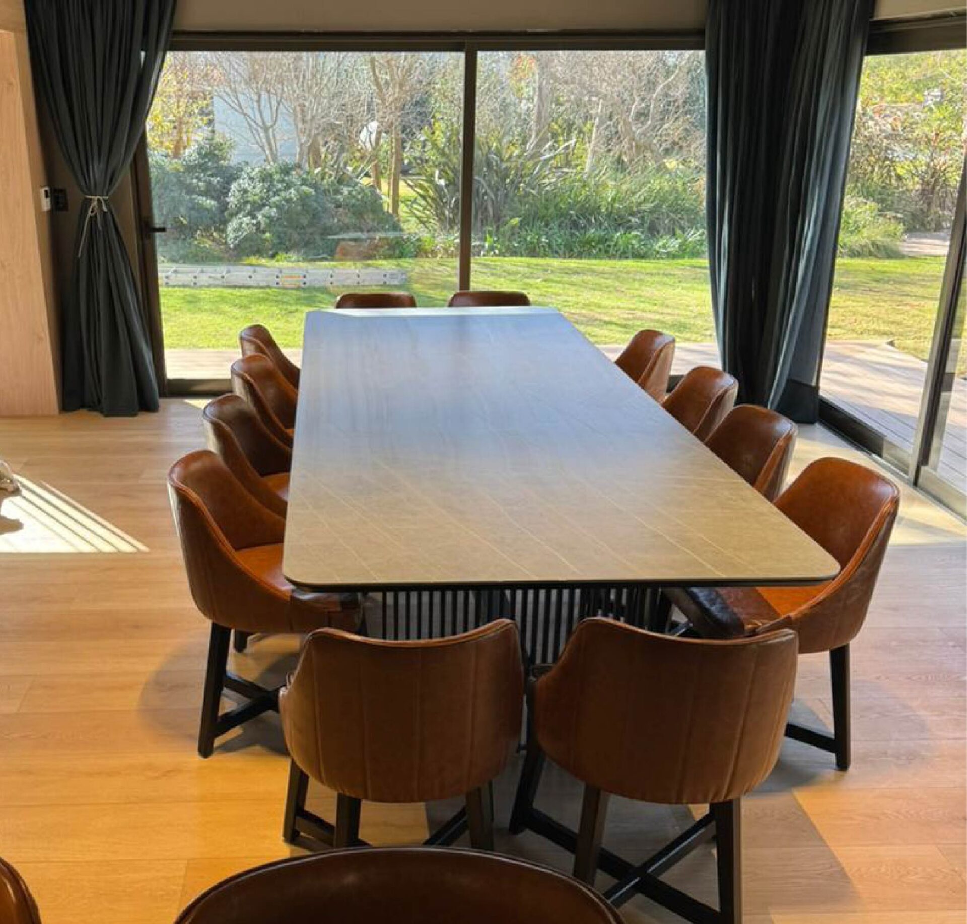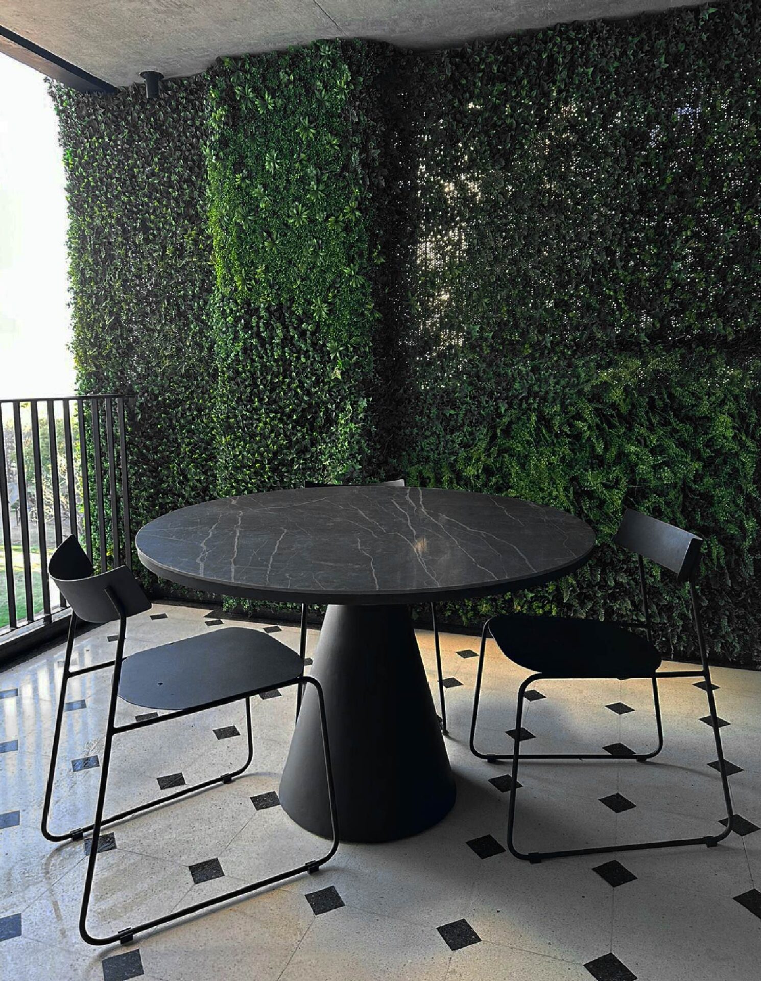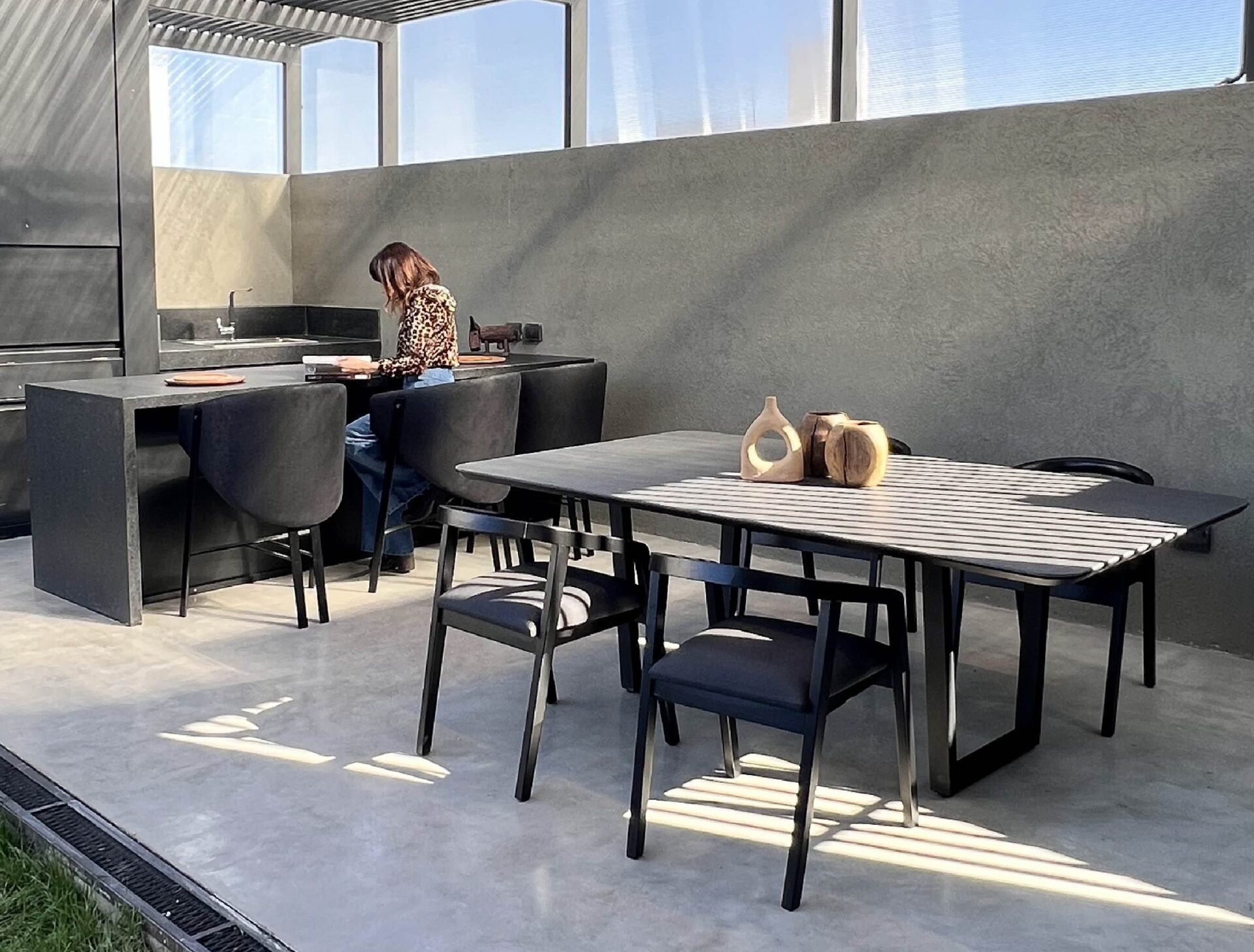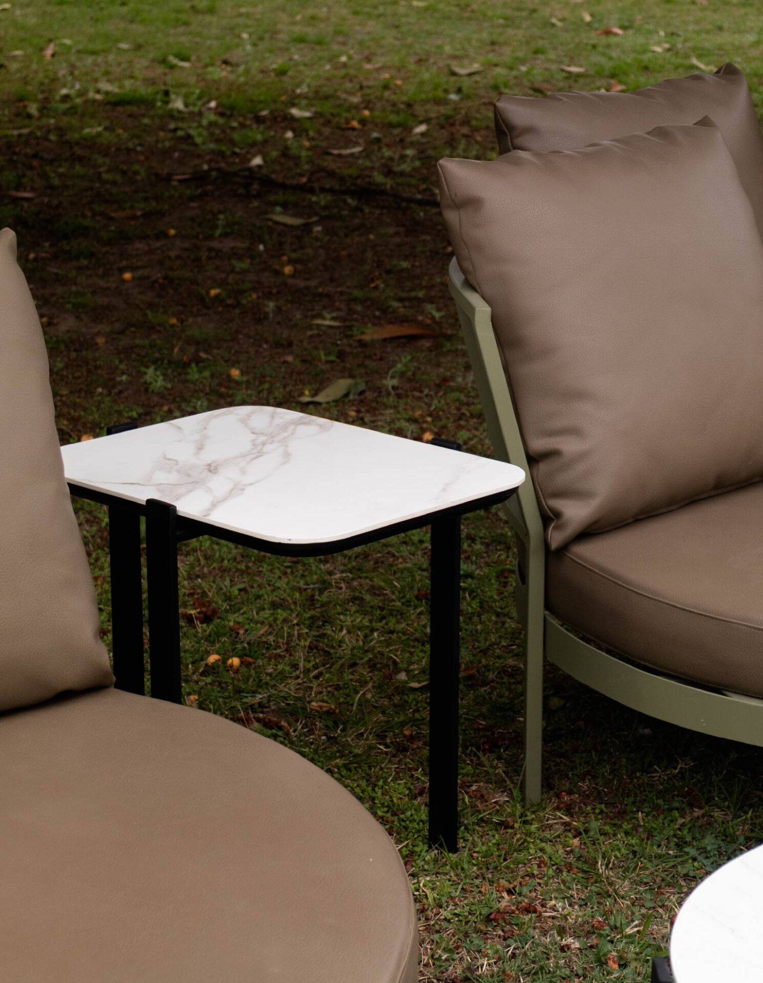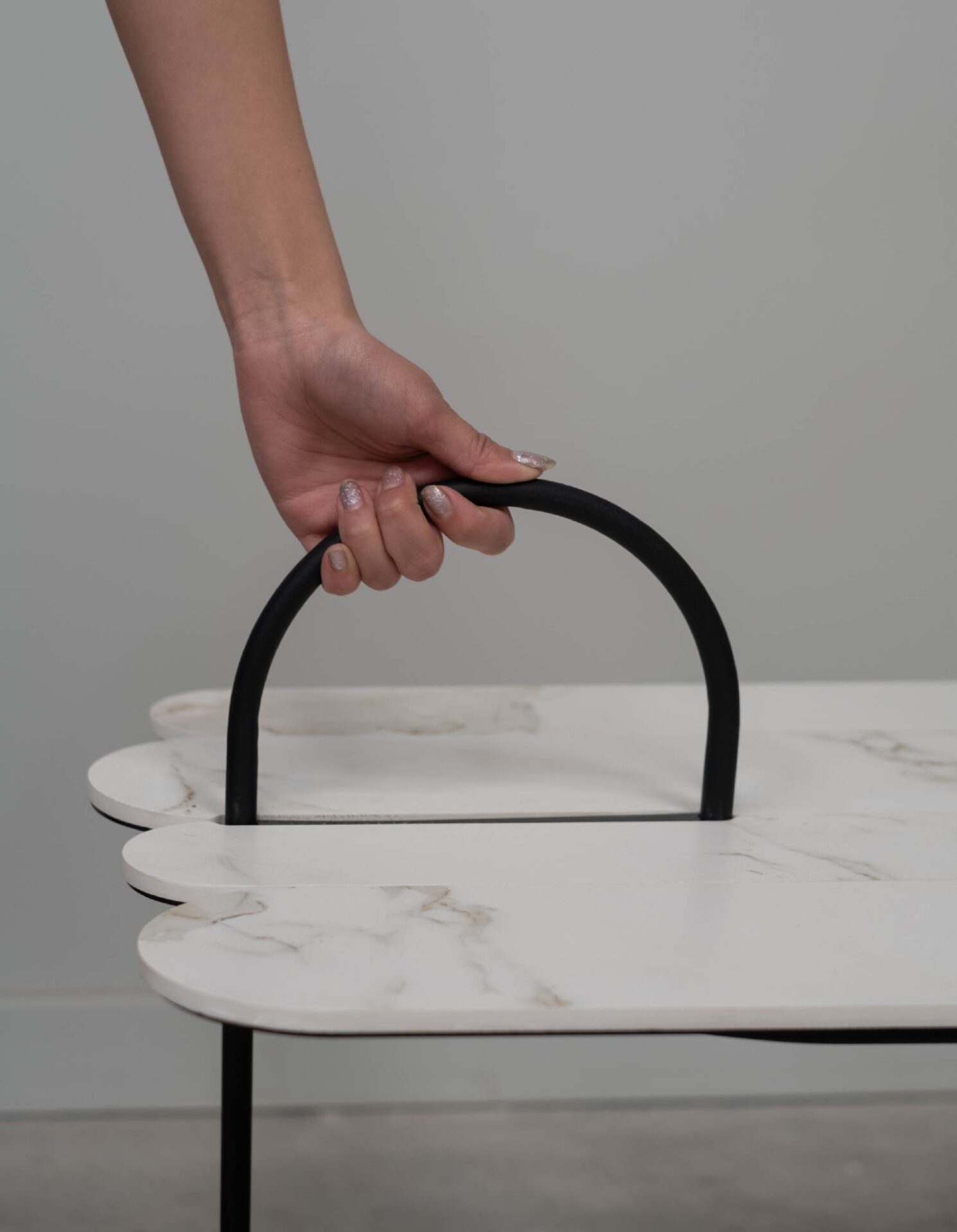 Diferentes diseños con bases metálicas con terminación epoxi y tapa de piedra sinterizada
