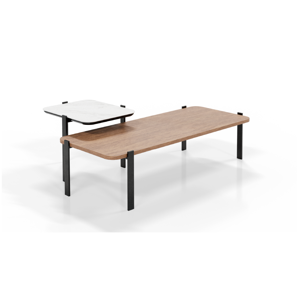 Piedra sinterizada de 6mm u 8mm, de diferentes colores y texturas. Madera lustrada o madera laqueada.