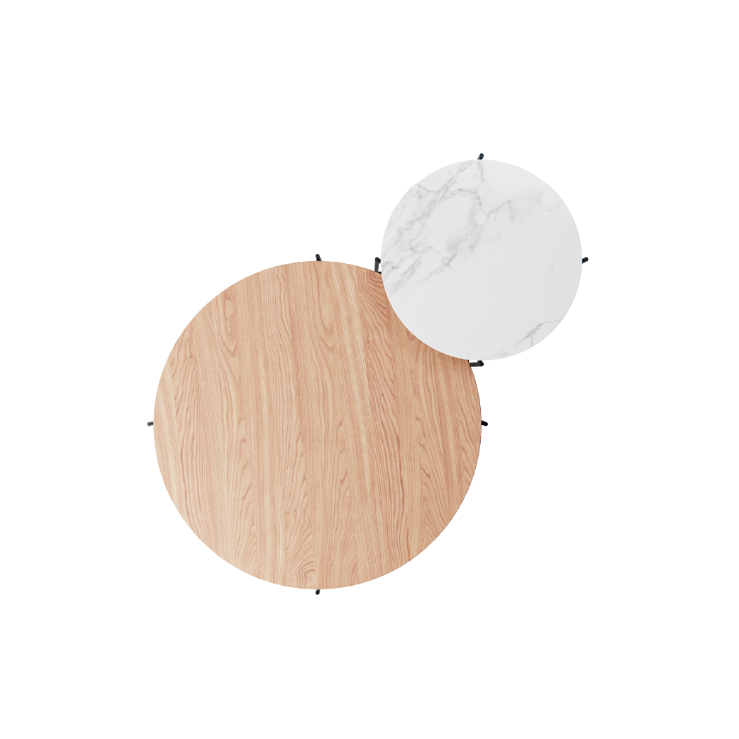 Piedra sinterizada de 6mm u 8mm, de diferentes colores y texturas. Madera lustrada o madera laqueada.